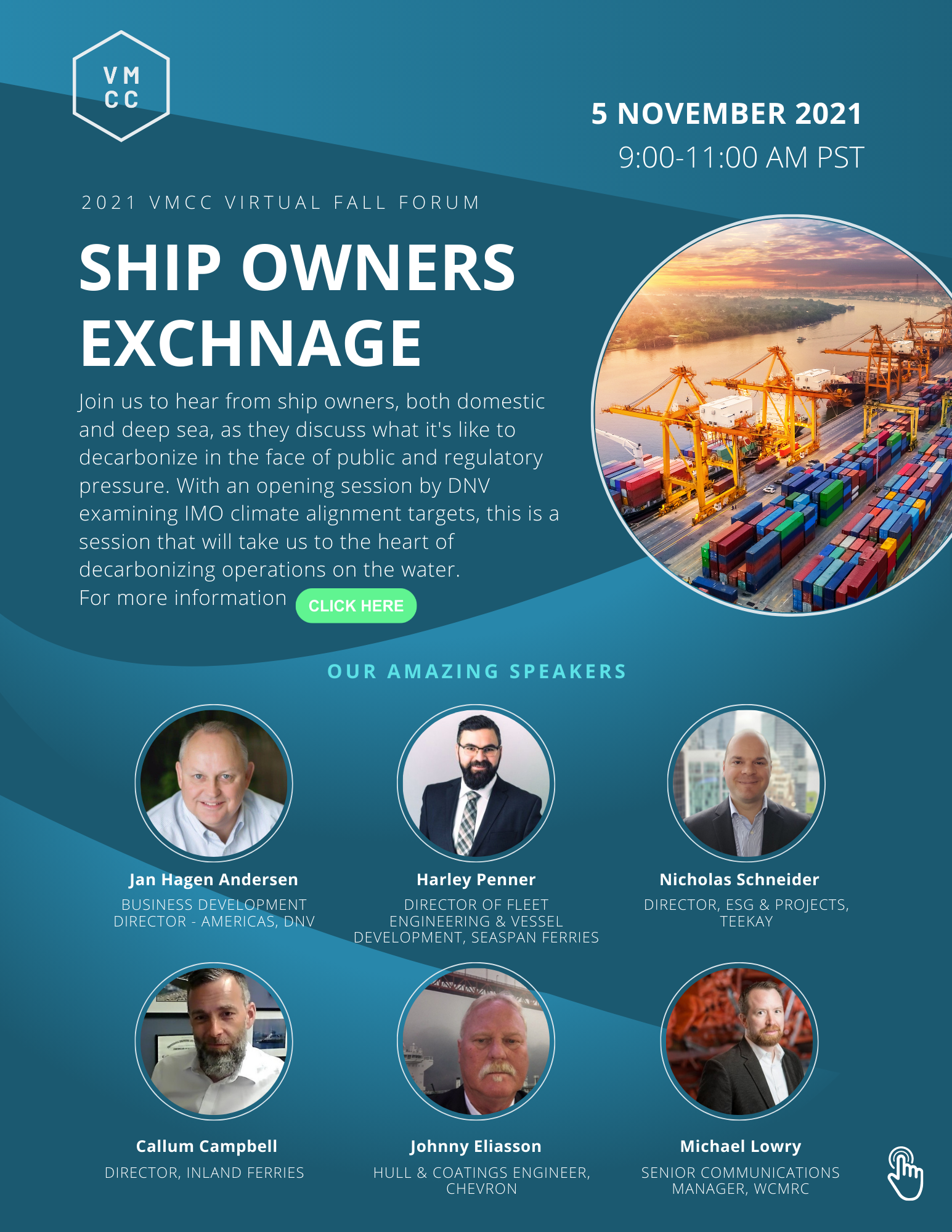 VMCC 2021 Virtual Fall Forum: Ship Owners Exchange Oct 29 Written By Elisabeth Charmley If you are interested in speaking at the forum please contact us here. Register Elisabeth Charmley